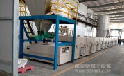 2、外形尺寸(約):總長26500*高1550*寬2100mm;進(jìn)料部分長1500mm,烘干部分長20000mm,出料部分長2000mm,冷卻部分長3000mm;進(jìn)料處輸送帶離地高980mm;
